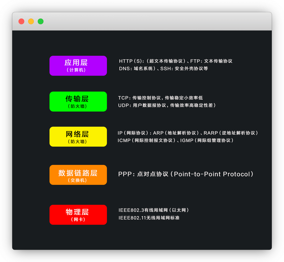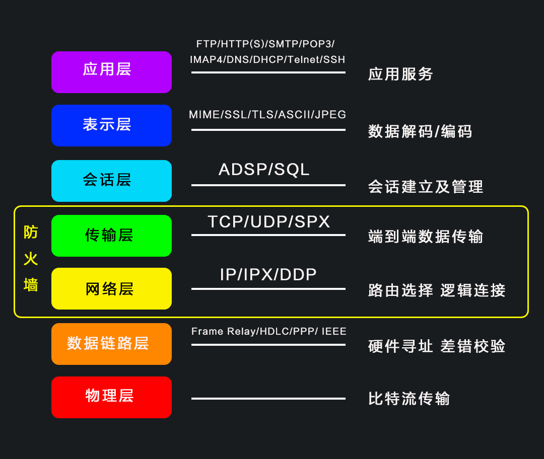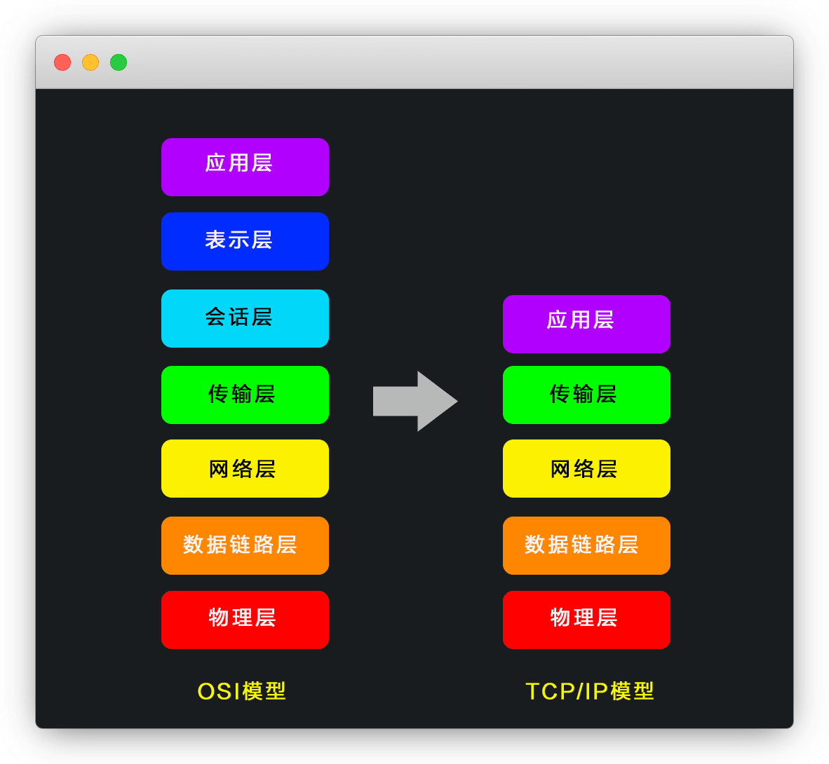 即:将OSI模型的 应用层、表示层、会话层 合并成了一个 应用层
