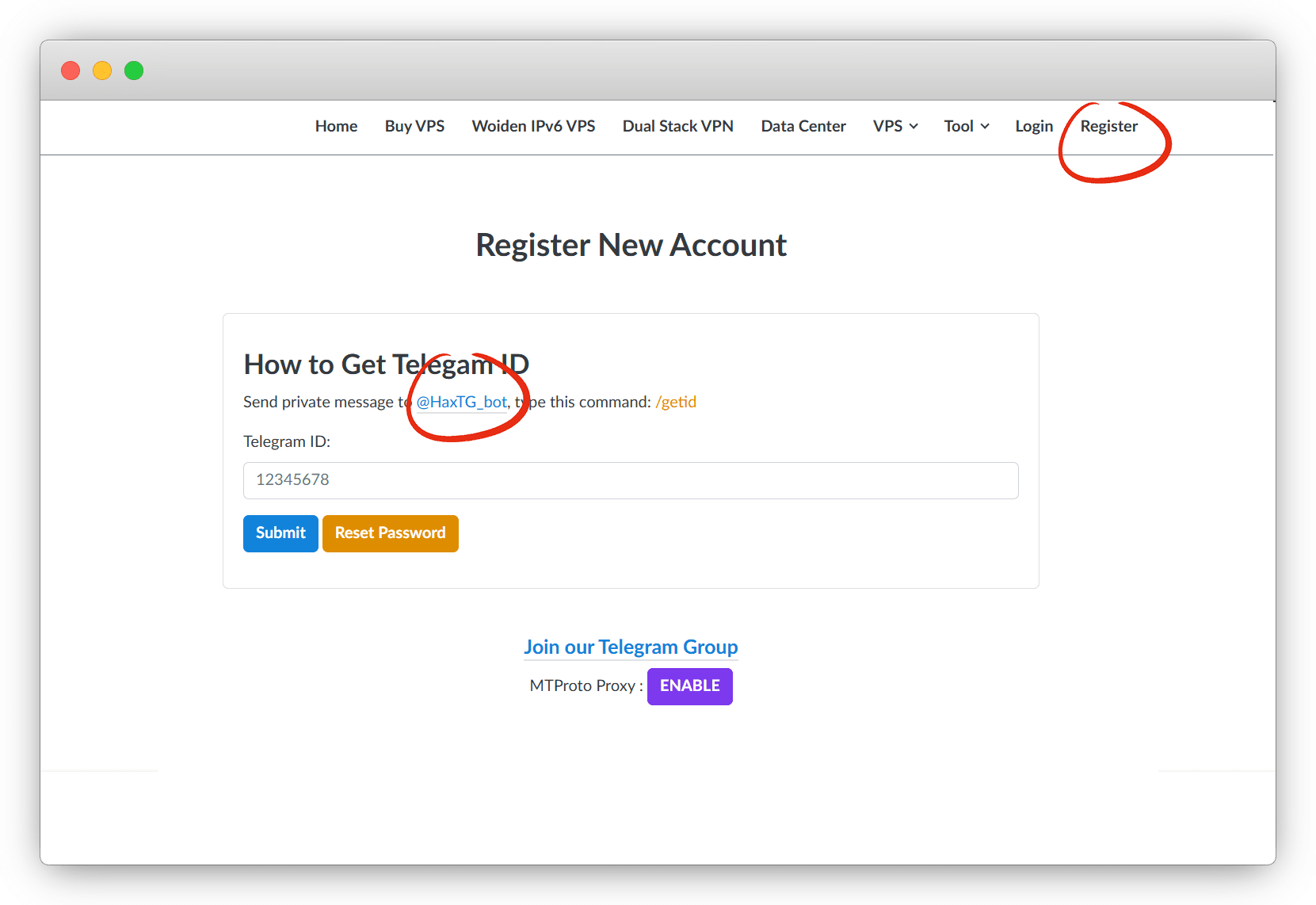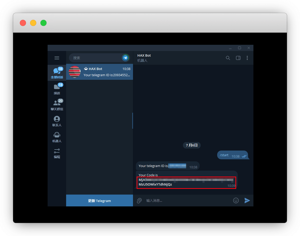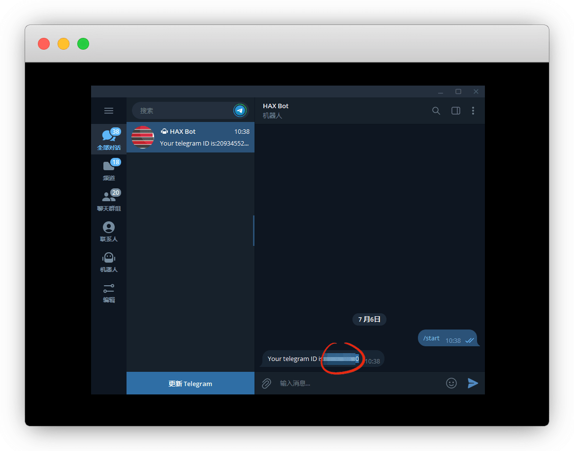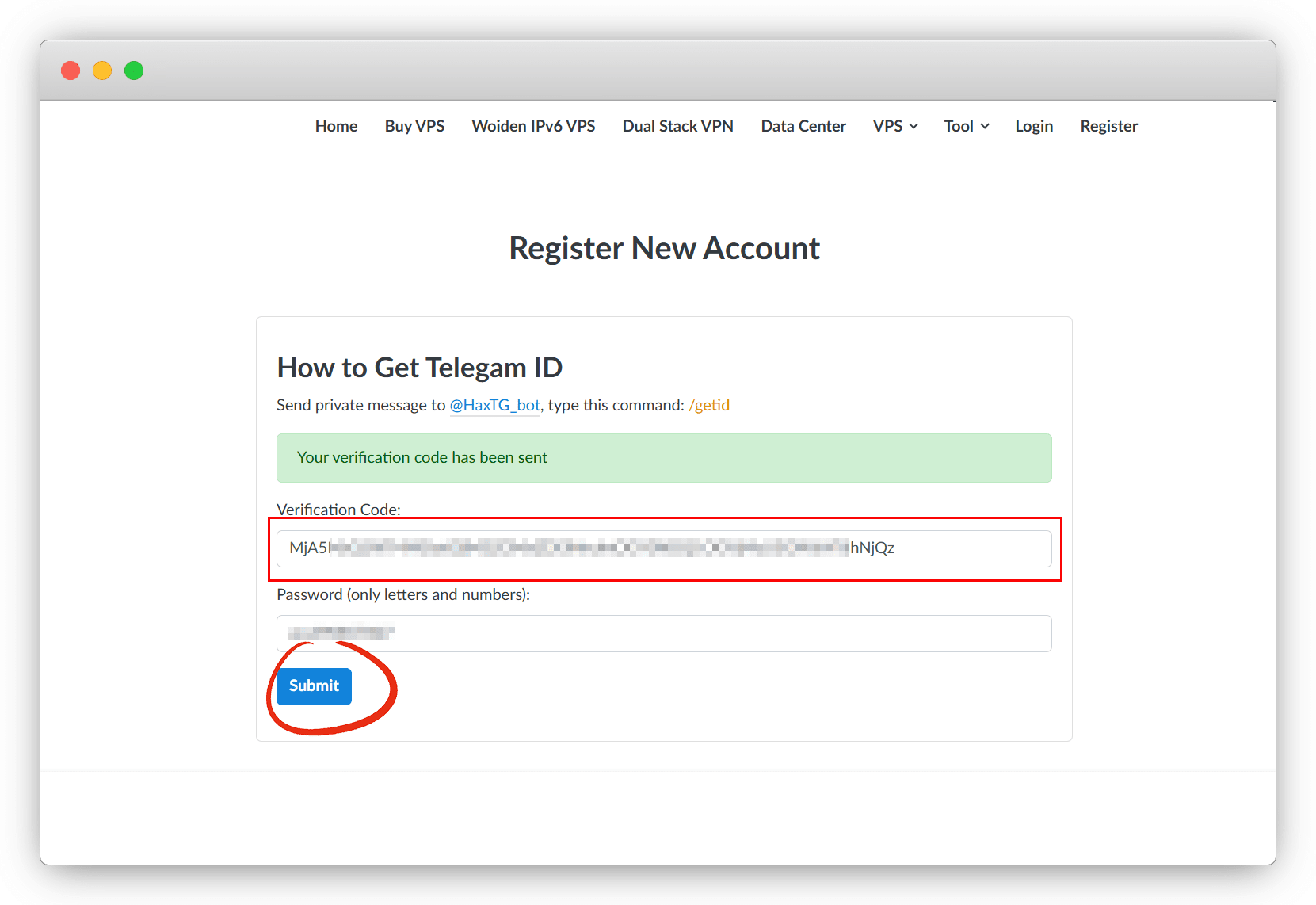将获取的tg ID复制出来,粘贴到Hax的注册页面中,点 submit 提交