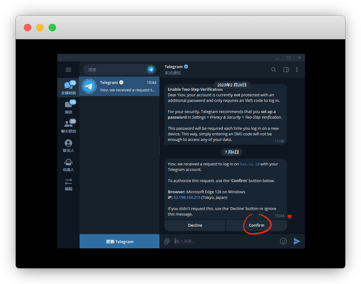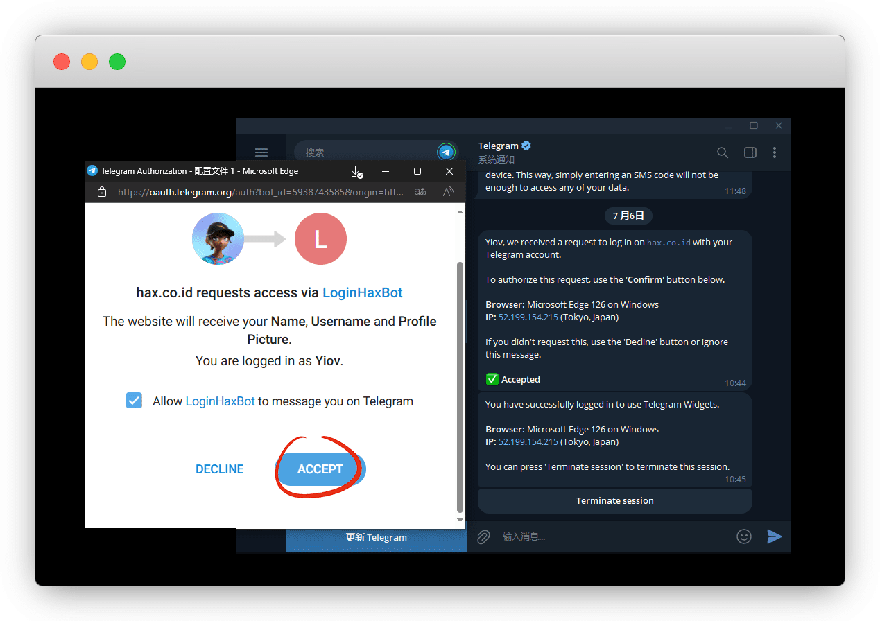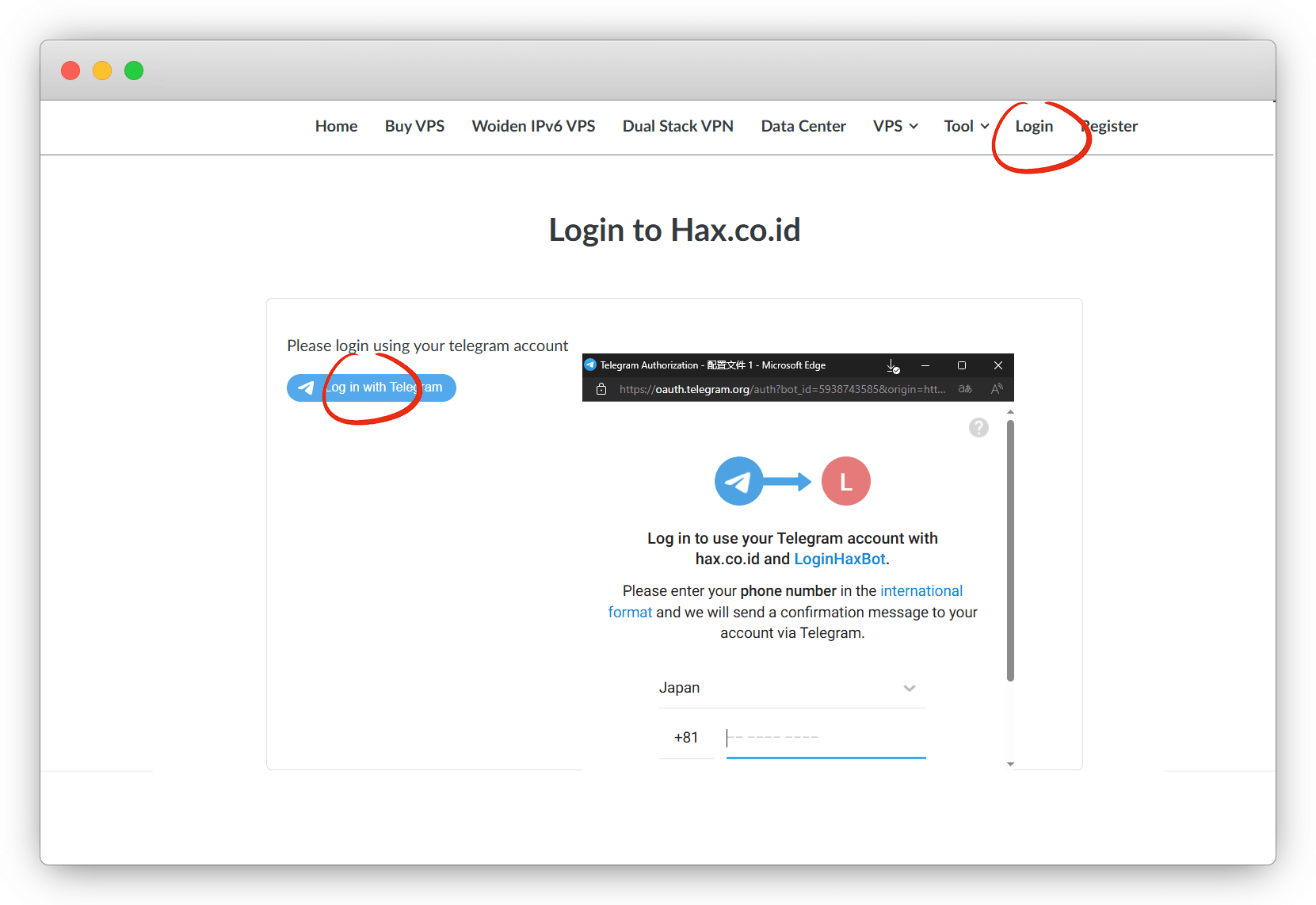 点击右上角 Login 登录,点击 Login with Telegram,弹出登录授权,输入你的手机号