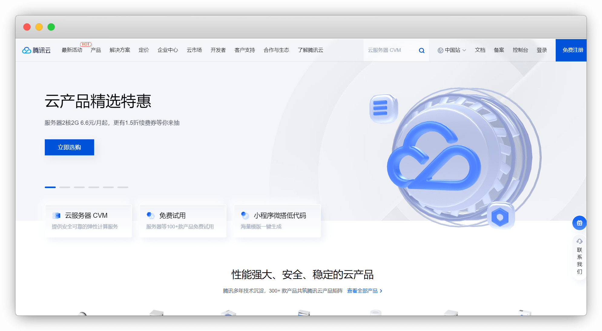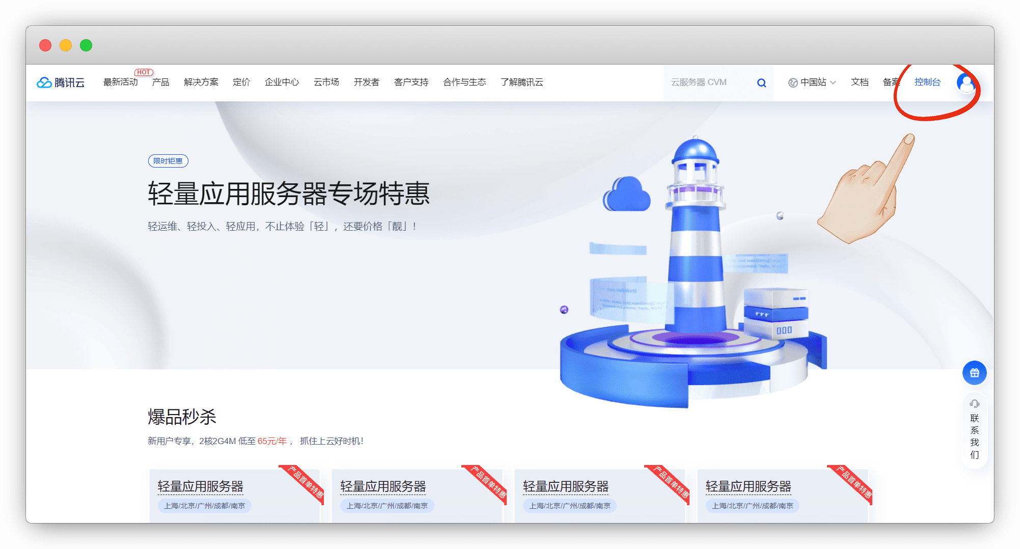 我这里腾讯云演示,进入 腾讯云官网