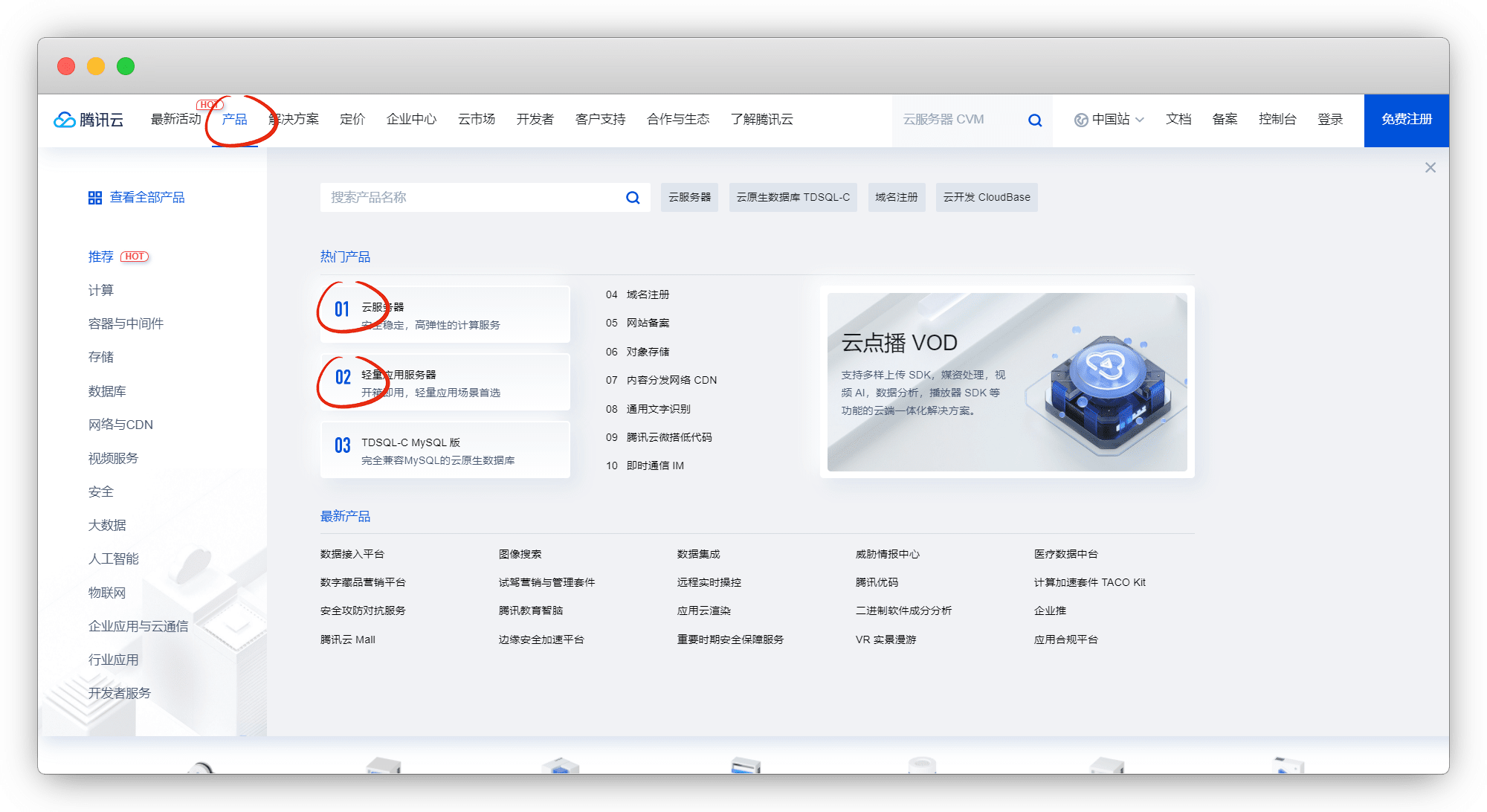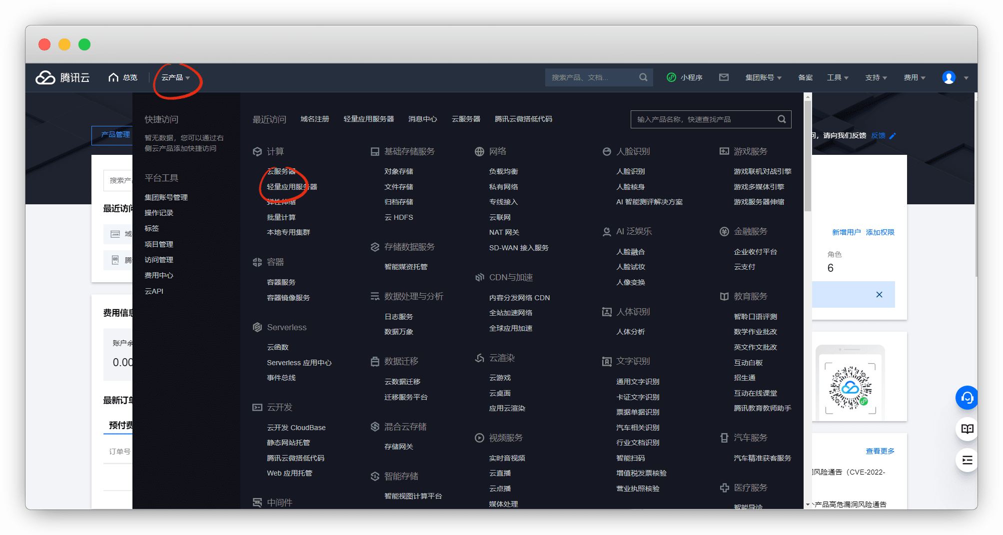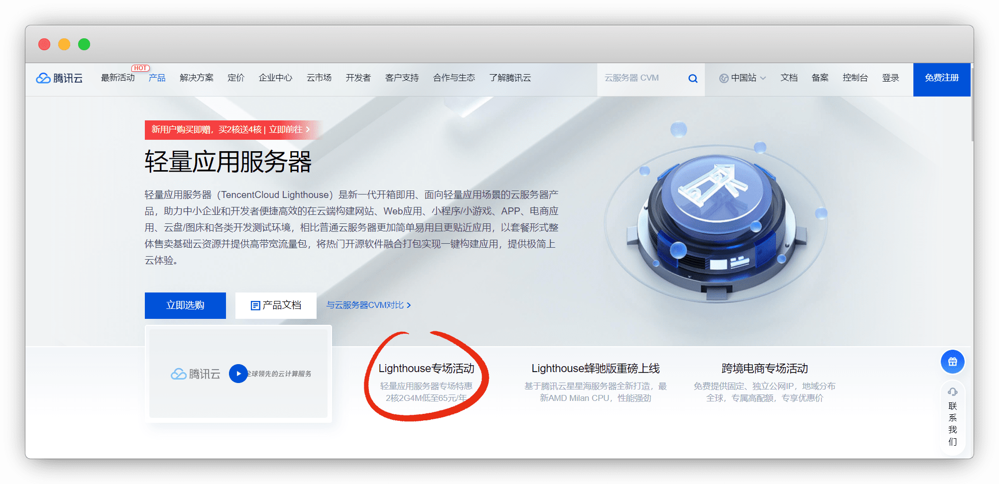 在产品里,可以选择 云服务器 或者 轻量服务器 ,个人使用建议轻量,价格便宜