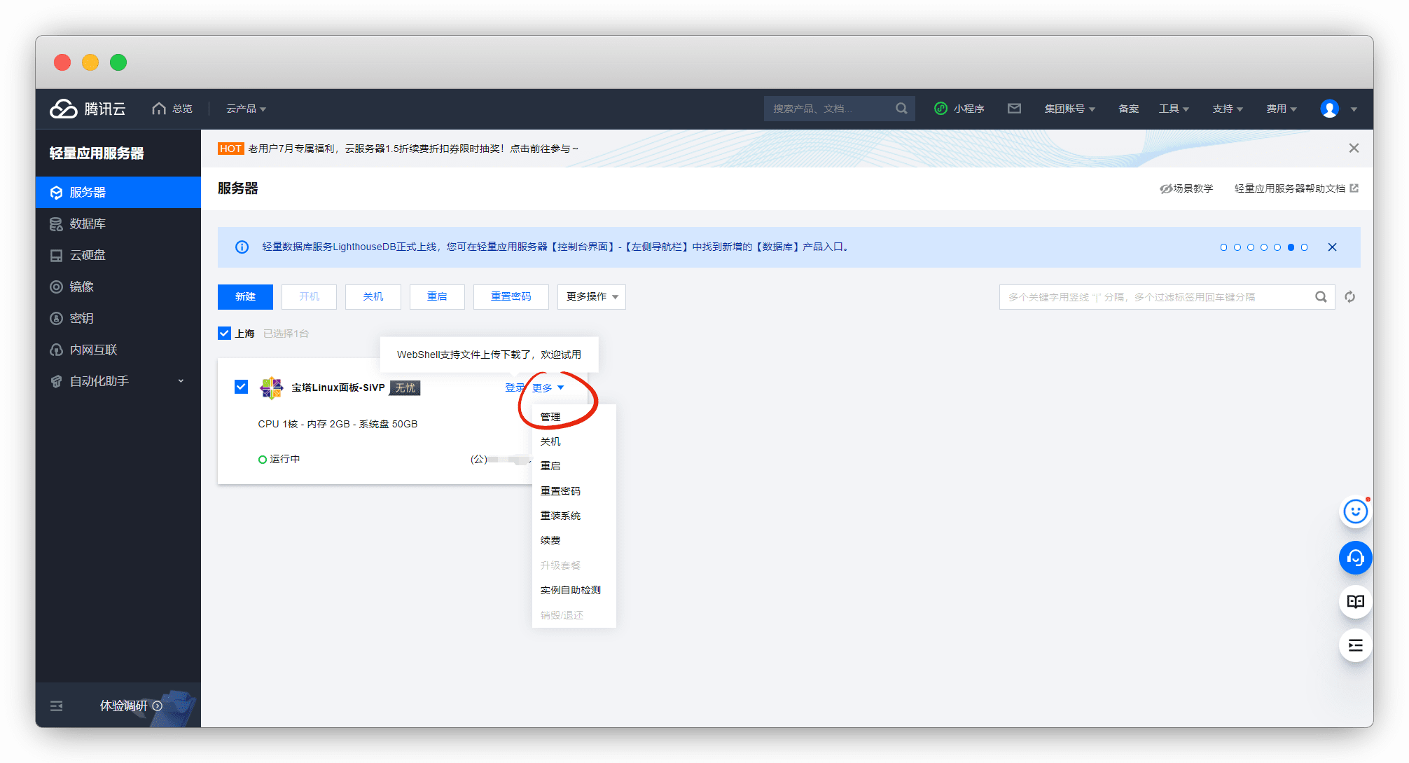 云产品 - 轻量应用服务器
